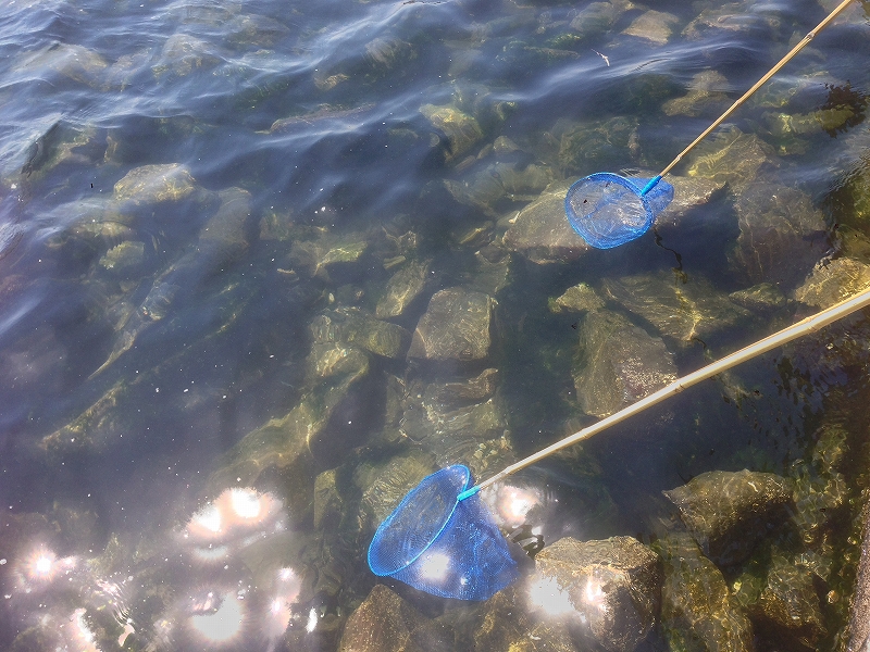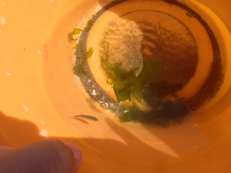 ヤドカリは防波堤沿いにくっついているので、釣る、というよりはアミですくうだけで捕れます。